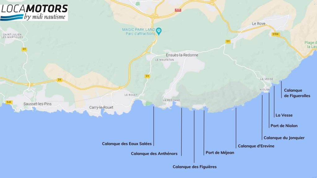Les calanques sont l’une des attractions les plus populaires de la Côte Bleue. Elles offrent des vues spectaculaires. Il y a plusieurs calanques le long de la Côte Bleue, chacune avec son propre charme unique. Locamotors situé au Vieux-Port vous propose de louer l’embarcation de votre choix pour découvrir ces paysages somptueux.
